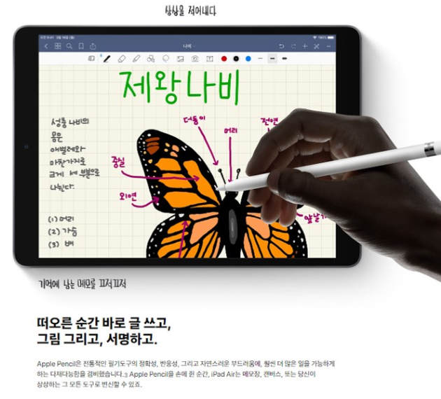 최고에요, 아주만족합니다. 아이패드 구매 후로는 종이낭비 없이 살고 있어요. 환경을 보호하는 느낌적 느낌. 페이퍼리스 라이프를 꿈꾸시는 분이라면 추천합니다. 미니5하고 에어3 사이에서 많이 고민했는데, 아무래도 큰 사이즈가 여러모로 쓸모가 있을거 같아서 구입했는데 아주 만족합니다.^^ |