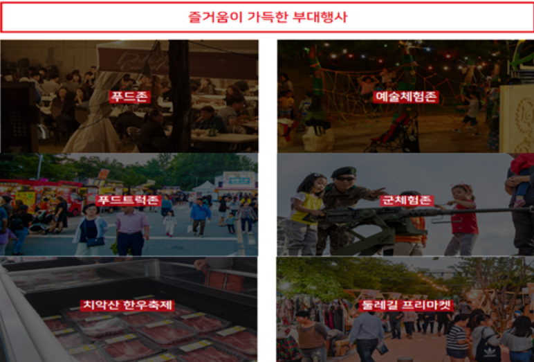 2019 원주 다이내믹 댄싱 카니발의 눈여겨 볼 또 하나의 즐길거리가 있는데요. 바로 군부대도 축제에 적극 참여를 한다는 것입니다. 군부대하면 PX를 제일 많이 떠올리실 텐데 군부대안에 있는 PX와 똑같은 가격으로 판매를 할 예정이라고 해요. 또한 아이들의 눈높이에 맞춰서 탱크 , 사격 , 포토존 , 군복 , 화생방 등 다양한 군부대체험을 할 수 있답니다.