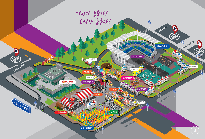 2019 원주 다이내믹 댄싱 카니발의 행사장으로 꽤 넓은 규모로 축제가 진행이 될 예정이랍니다. 먹거리와 즐길거리가 가득 채워져있는게 눈에 보이네요.^ㅡ^