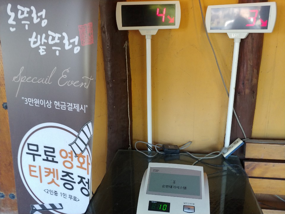 넓은 주차장이 있었기 때문에 차가 많이 주차되어 있음에도 불구하고 비교적 쉽게 주차를 할 수 있었어요. 논뚜렁밭뚜렁의 외관은 황토로 외관이 되어있더라구요. 도시에서는 볼 수 없었던 외관이라 신선하기도 하고 정말 멀리 놀러왔구나 하는 느낌이 들어서 힐링이 됐어요. 벗어났다는 느낌 알죠? 하핳. 주차장을 보면 이벤트 입간판과 번호표가 보여요. 정말 맛집이구나 느낀건 이 번호표 떄문이었는데요. 나중에 직원에게 물업어보니 그냥 들어가면 된다고......킁