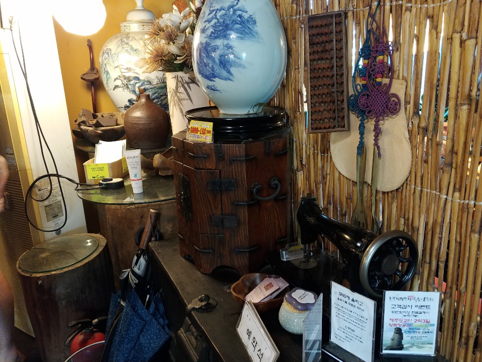 직원분의 안내를 받고 한편으론 허탈하기도 했지만 이미 배가 많이 고팠던터라 후다닥 들어갔답니다. 한끼도 안먹은 상태였거든요. 내부에 들어오니 보이는 아기자기한 작식들. 도자기도 눈에 보이고 미싱도 보이고 옛날 시골집을 떠오르게 하더라구요. 좀 더 자세히 보니 SNS이이벤트를 진행하더라구요. 제부도에 자주 가시는 분들이라면 한번 이벤트를 해 보셔도 좋을 것 같아요. 제부도는 생각보다 가깝다니다. 다만 운전을 해야되니 피곤할거에요 많이.