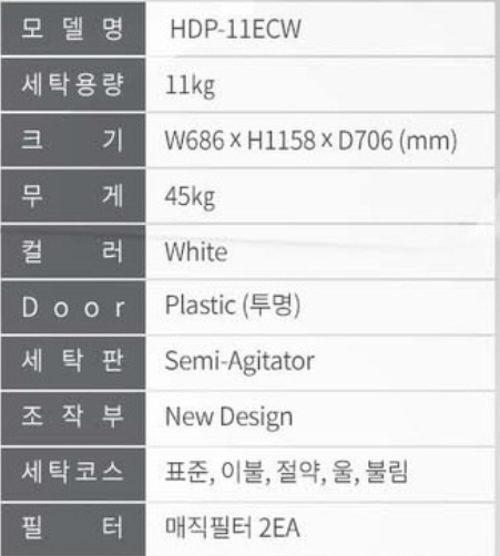 하이메이드 일반 세탁기 HDP-11ECW 11kg 방문설치